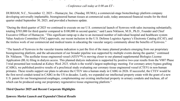 Humacyte Q3 2025 Earnings Call Transcript Reveals Insights and Future Opportunities
